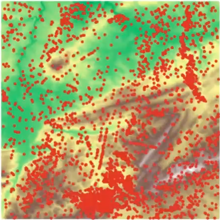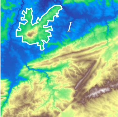 The point \(x\) is a peak if the persistence\(:= d-b\) of the island \(I\) is larger than \(91\)m (=\(300\)ft).