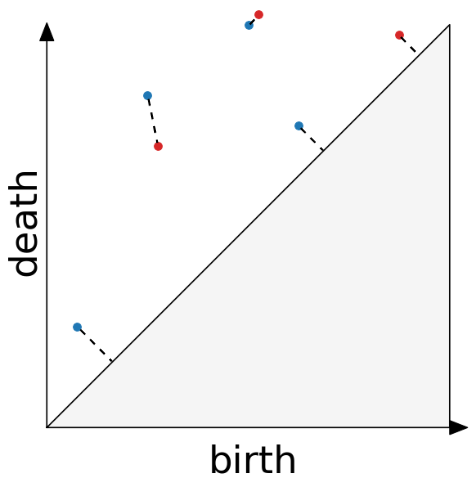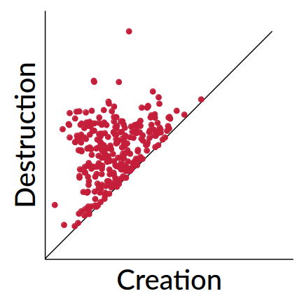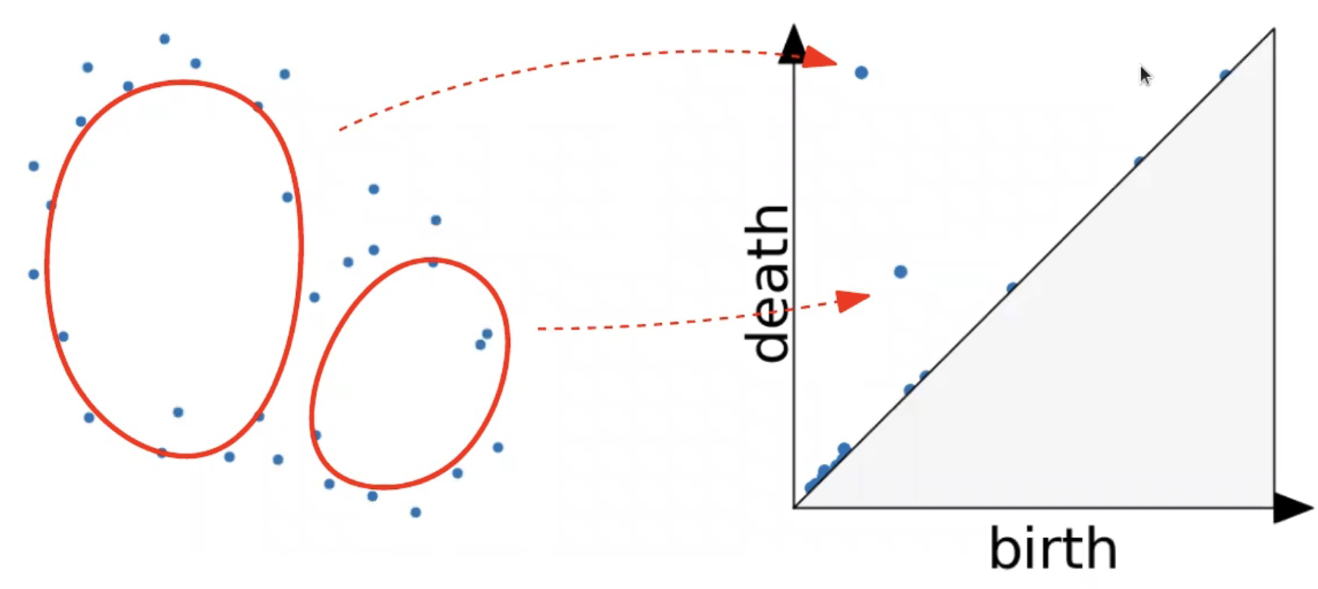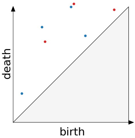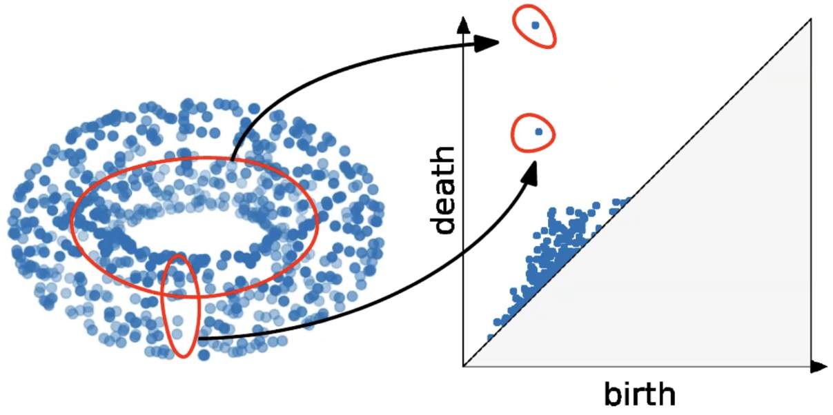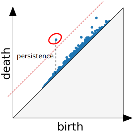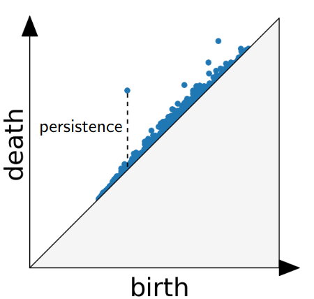 For more information about the persistence diagram, see Vincent Divol’s CDS Lunch Seminar presentation “Quantifying the topology of datasets using Topological Data Analysis”