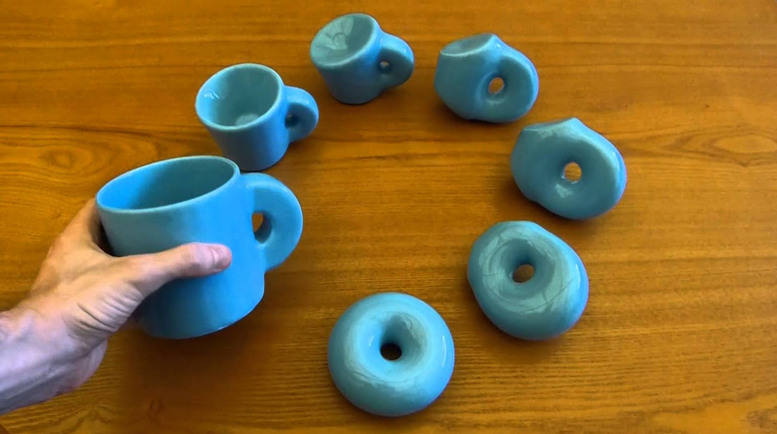 Two objects are topologically equivalent if we can transform one into another with continuous transformations (without tearing the object)