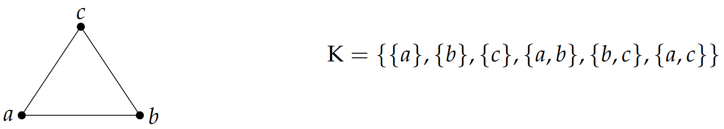 Notice that \(K\) does not contain the 2-simplex \(\{a,b,c\}\)